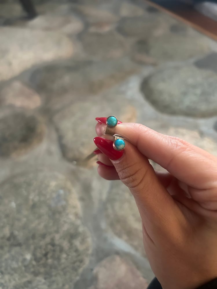 Hand-hammered, cut and soldered. Genuine Kingman turquoise